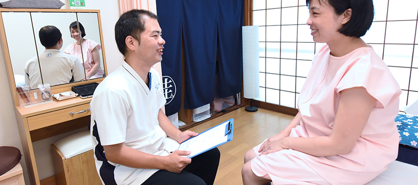 当院では、心身に不安を感じている方のお役に立ちたい、一人でも多くの方の健康をサポートしたい、そんな思いで、日々真剣にお一人お一人の施術にあたらせていただいております。